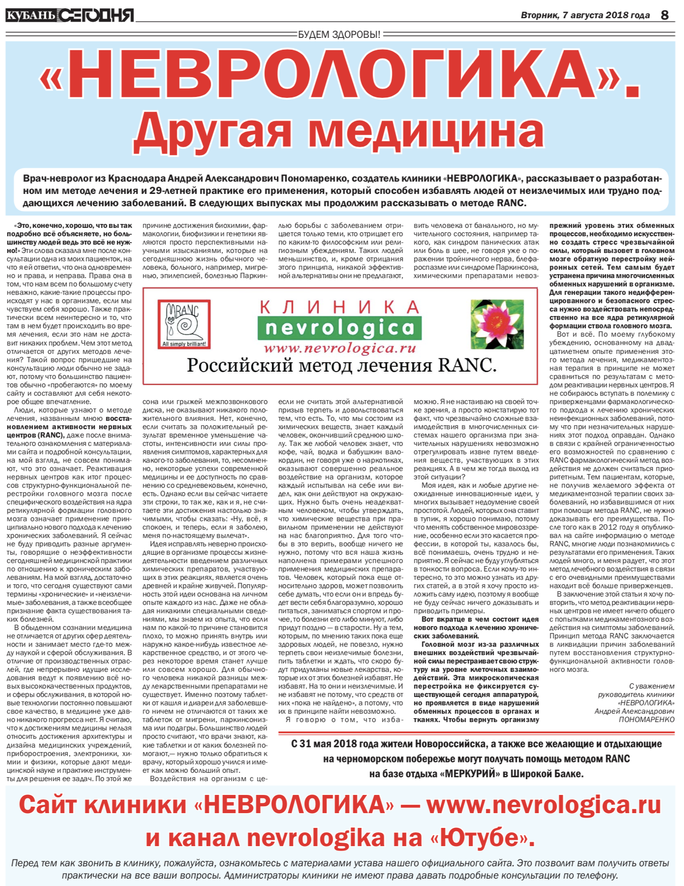 С Уважением руководитель Клиники «НЕВРОЛОГИКА» Андрей Александрович Пономаренко