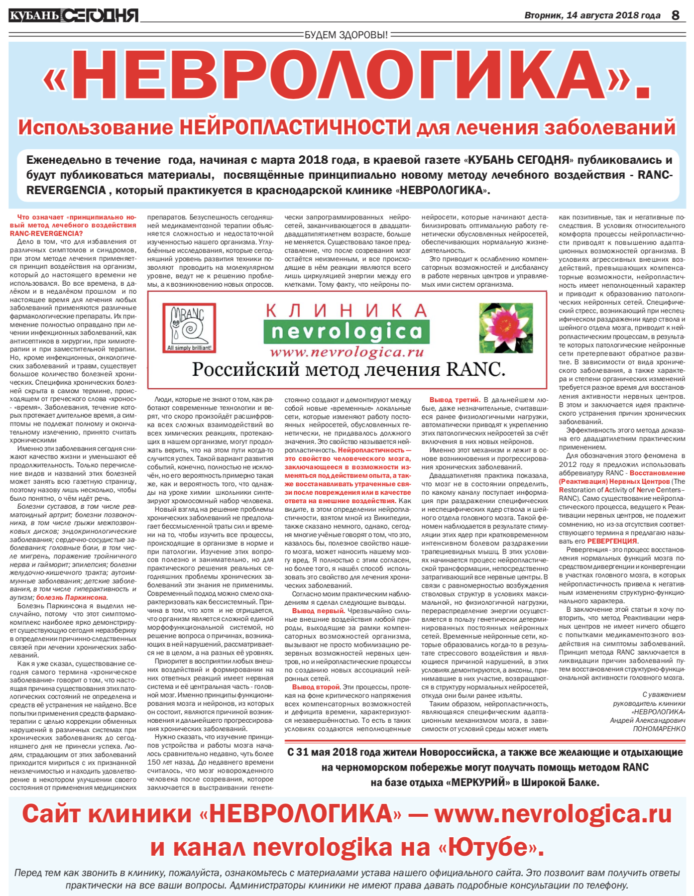 Узнать подробнее о методе лечения RANC-REVERGENCIA можно на официальном сайте Клиники «НЕВРОЛОГИКА»: www.nevrologica.ru. и канале nevrologika на ютубе.